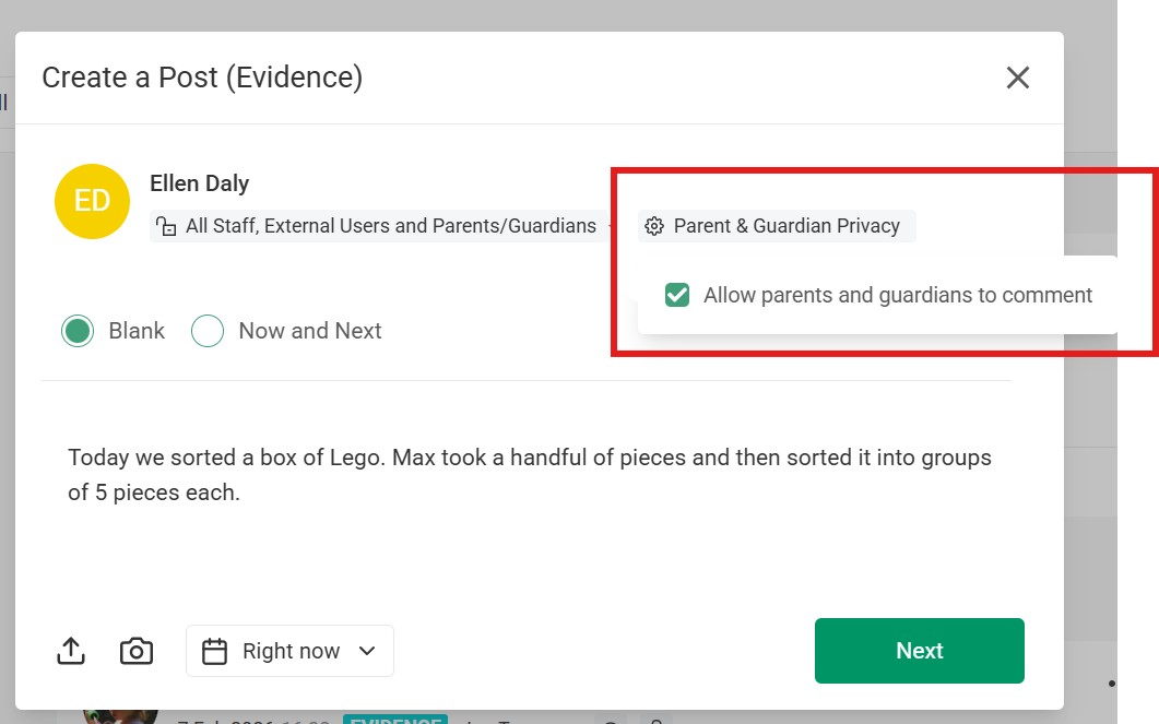 If you don’t want comments from parents on a particular post, you can turn off comments for that post. Next to the privacy level of the post, there is a setting for Parent & Guardian Privacy. Select this and then untick the box to turn off parent comments for this post.